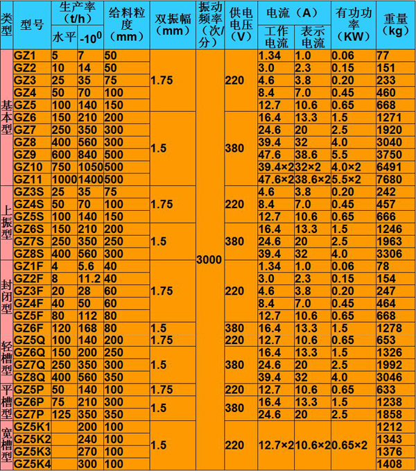 7、不適用于具有防爆要求的場合。 結構:電磁振動給料機由料槽、電磁振動器、減振器、控制箱幾部分組成技術參數見下表